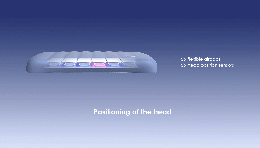 Der Nitetronic A1 verfügt über sechs integrierte flexible Luftkissen und sechs Kopfpositionssensoren. Dank dieses fortschrittlichen Designs kann er die genaue Position und Haltung Ihres Kopfes präzise erfassen, unabhängig davon, wo Sie auf dem Kissen schlafen. Jedes dieser sechs unabhängig voneinander getrennten flexiblen Luftkissen kann autonom arbeiten und ermöglicht so eine genaue und agile Anpassung an die Position Ihres Kopfes und Ihre Schnarchgewohnheiten.