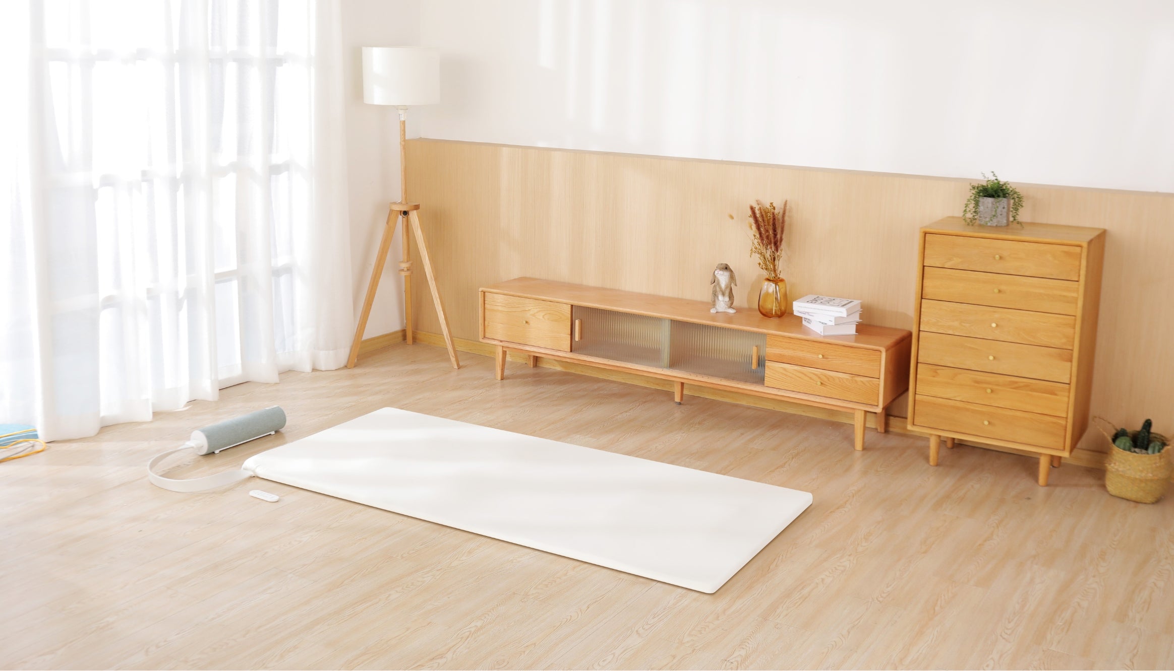 Verwenden Sie es auf Ihre Weise. Funktioniert perfekt auf einer normalen Matratze, dem Boden oder sogar einer Tatami-Matte. Lässt sich bei Nichtgebrauch einfach zusammenrollen.